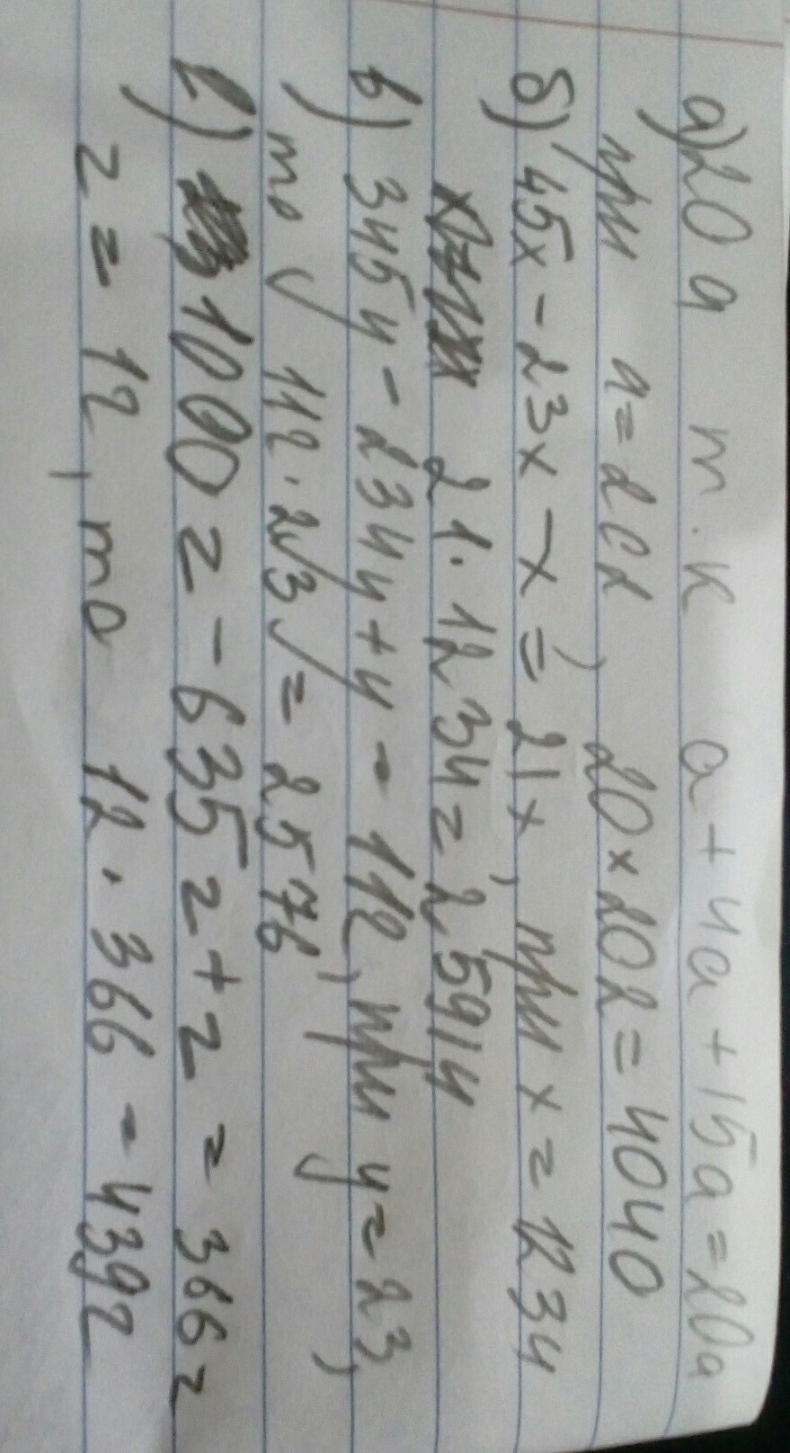a+4a+15a при а=202 45x-23x-x при х=1234 345y-234y+y при y=23 1000z-635z+z при z=12 Упростить выражения и найди их значения