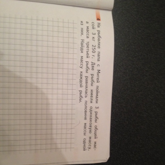 Первая и вторая рыба равны а третья это половина значит x + x + 1/2x = 3.250