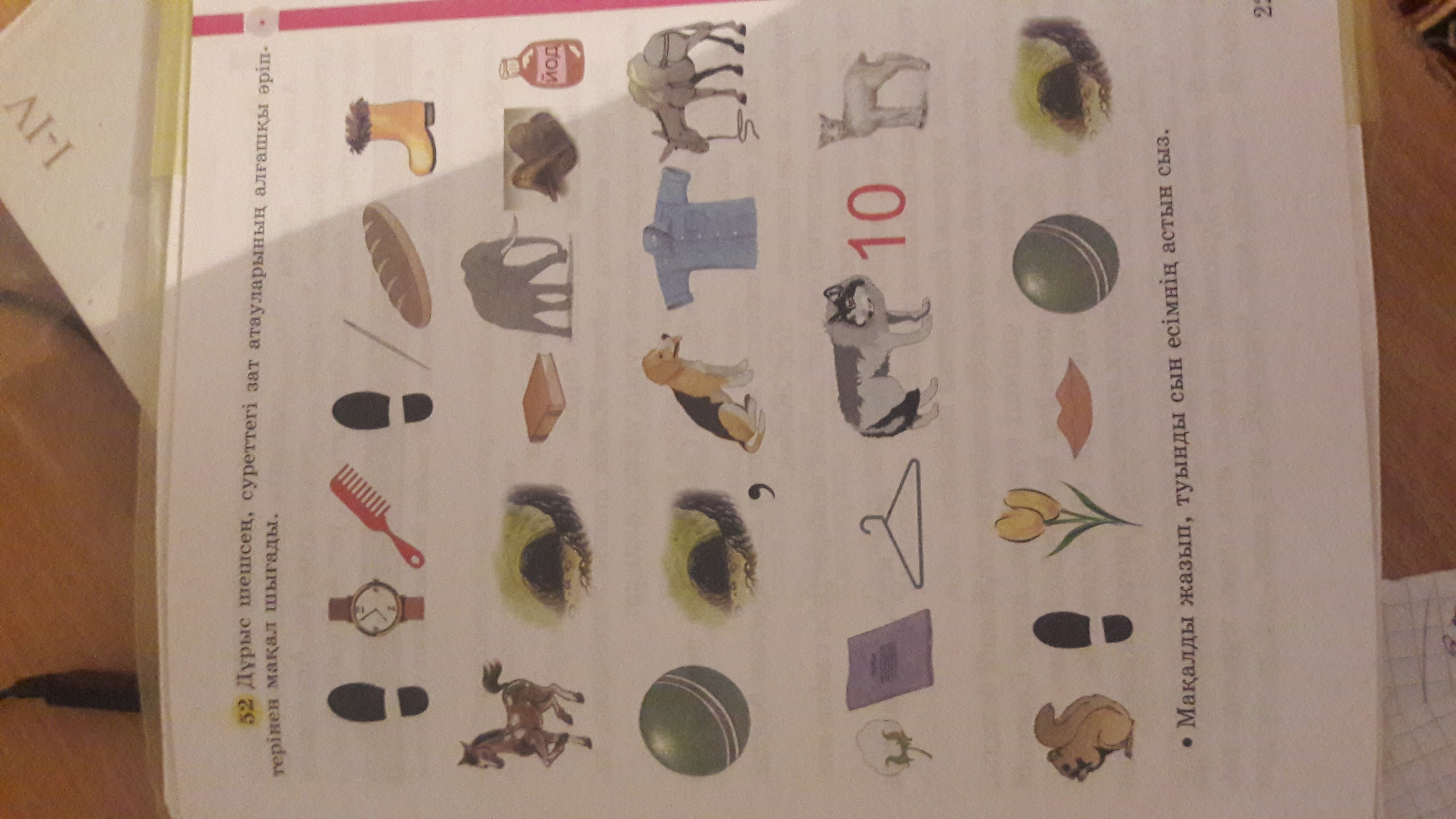 Дұрыс шешсең суреттегі зат атауларының алғашқы əріптерінен мақал шығады.