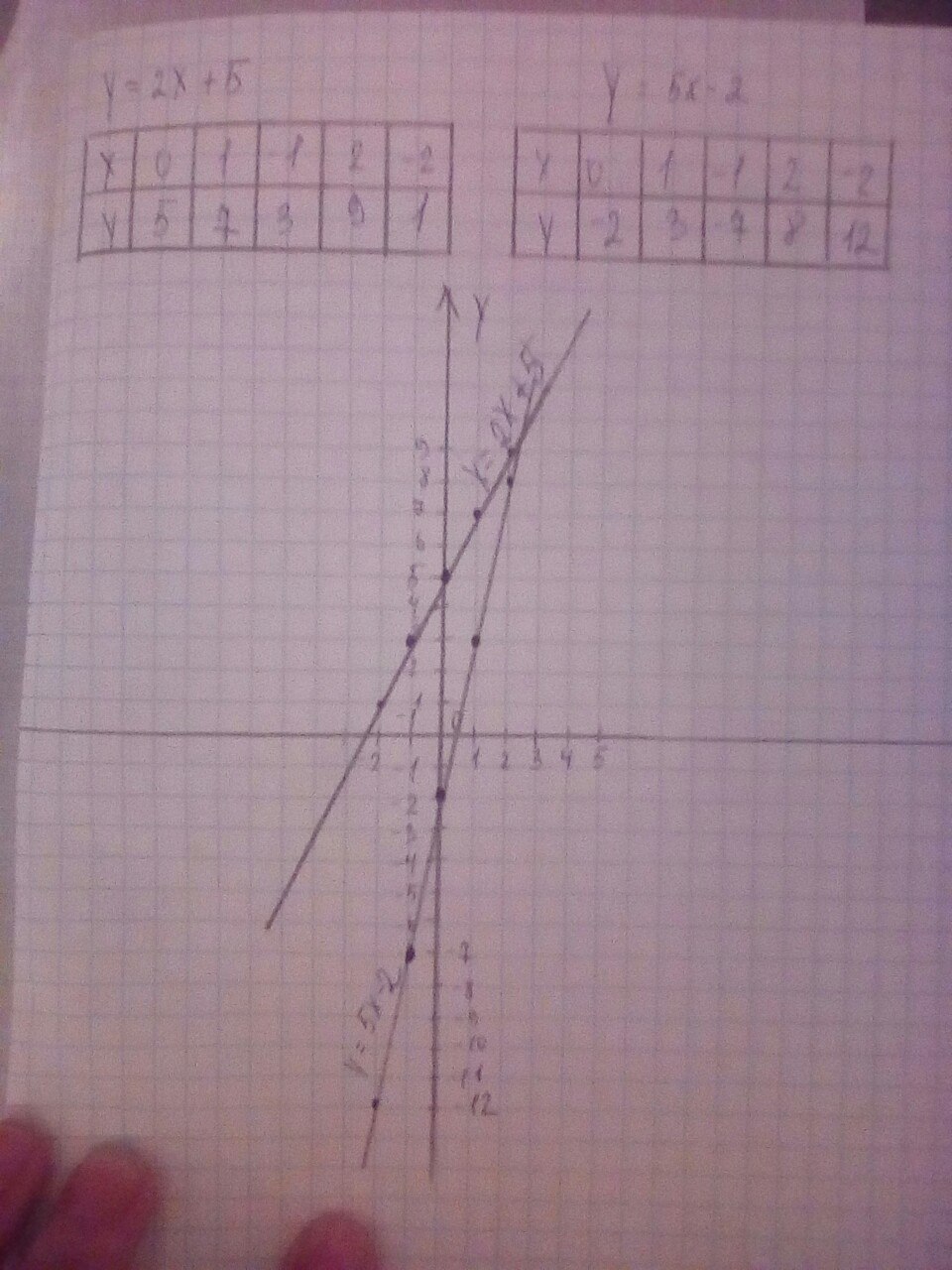 Блиин мне надо было раздельно сначало y=2x+5 и 2 y=5x-2 не на одном графике