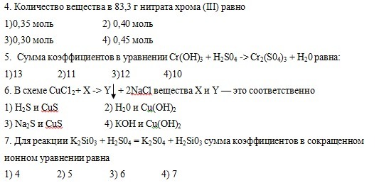 4)n=m/M =83.3 / 238= 0.35 моль - ответ 1)0,35