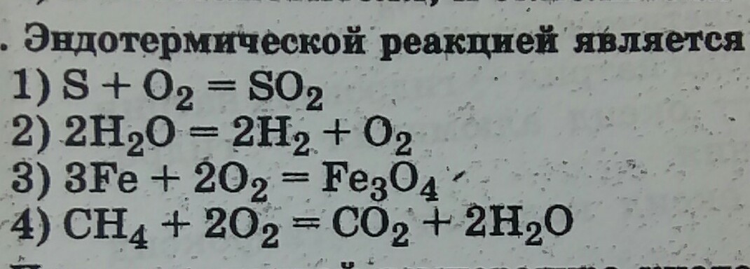 Эндотермической реакцией является 2H₂O=2H₂+O₂