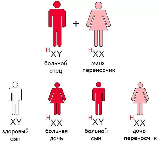 мужчина гемофилик женился на здоровой женщине, отец которой болел гемофилией, каковы генотипы мужа и жены, какой генотип будет у детей