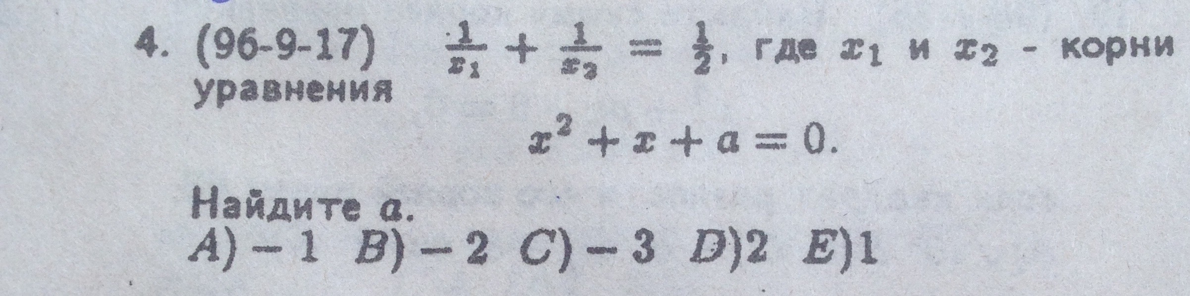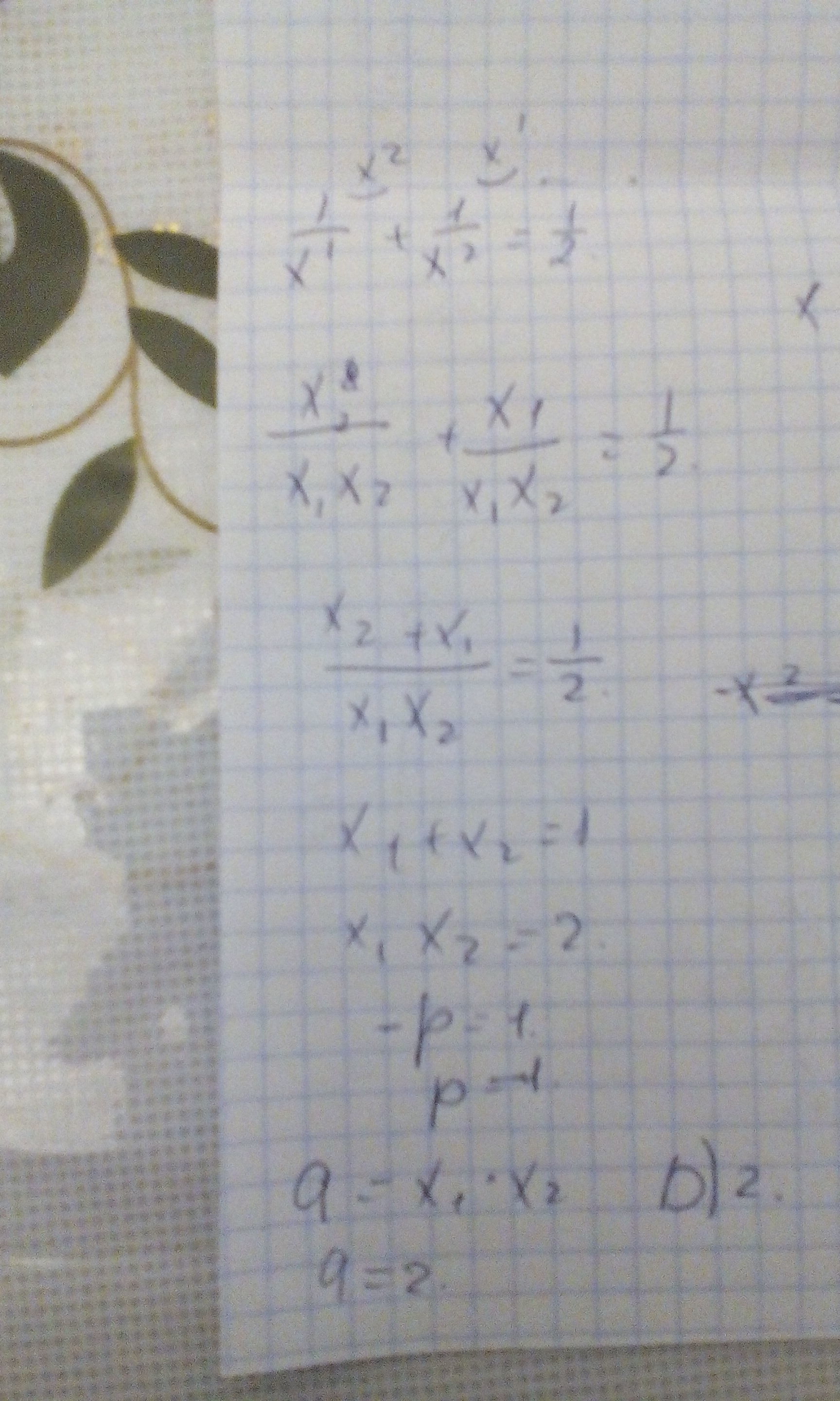 Там надо привести к общему знаменателю потом использовать теорему Виета: 1х1+1х2...