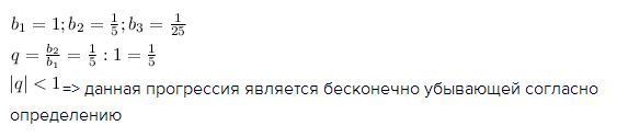 |q|<1 => данная прогрессия является бесконечно убывающей согласно определению