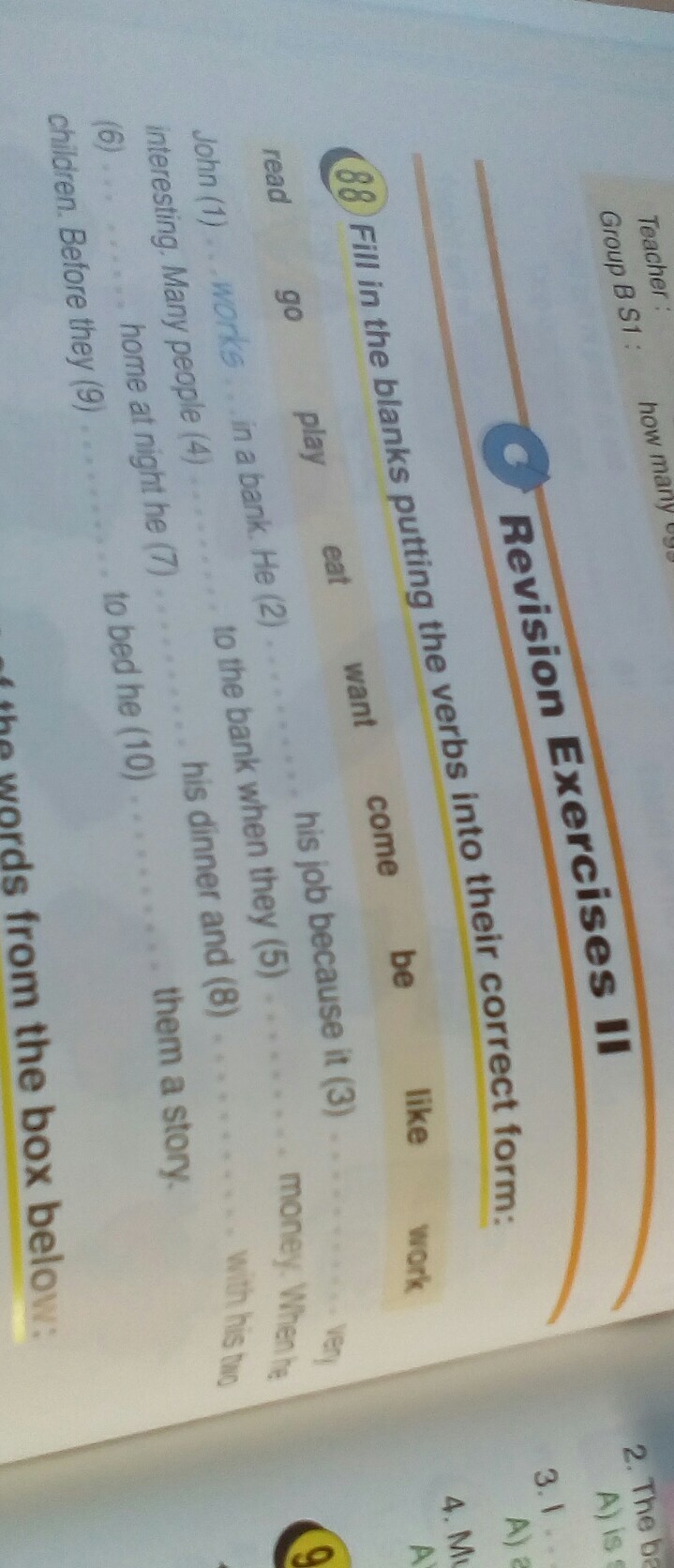 2-likes, 3-be, 4-go, 5-want, 6-come, 7-eats, 8-plays, 9-go, 10-reads