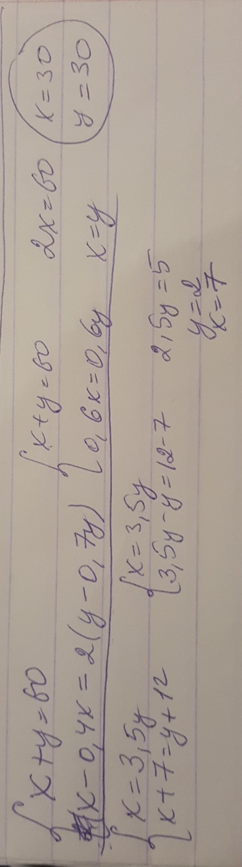 Во 2 корзине 3.5 раза меньше мячей , чем во 1. Когда во 2 корзину добавили 12 мячей , а в 1 положили 7 мячей, то количество мячей в корзинах стало равным. Определите количество мячей в каждом корзине.