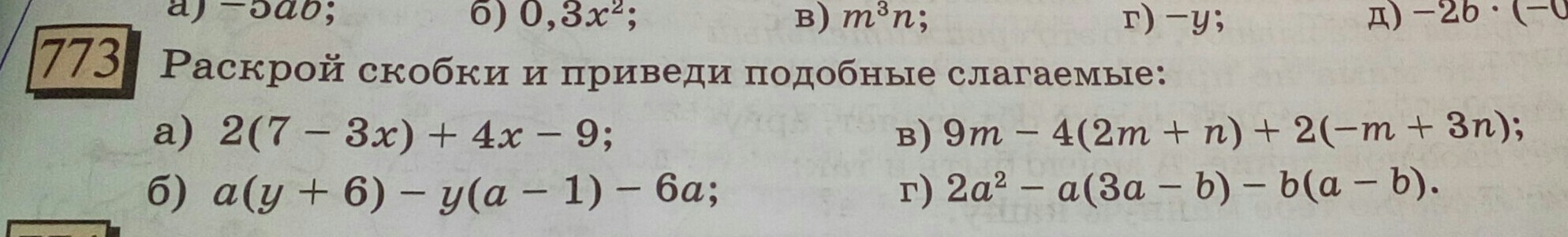 б)a(y+6)-y(a-1)-6a=ay+6a-ay+y-6a=y