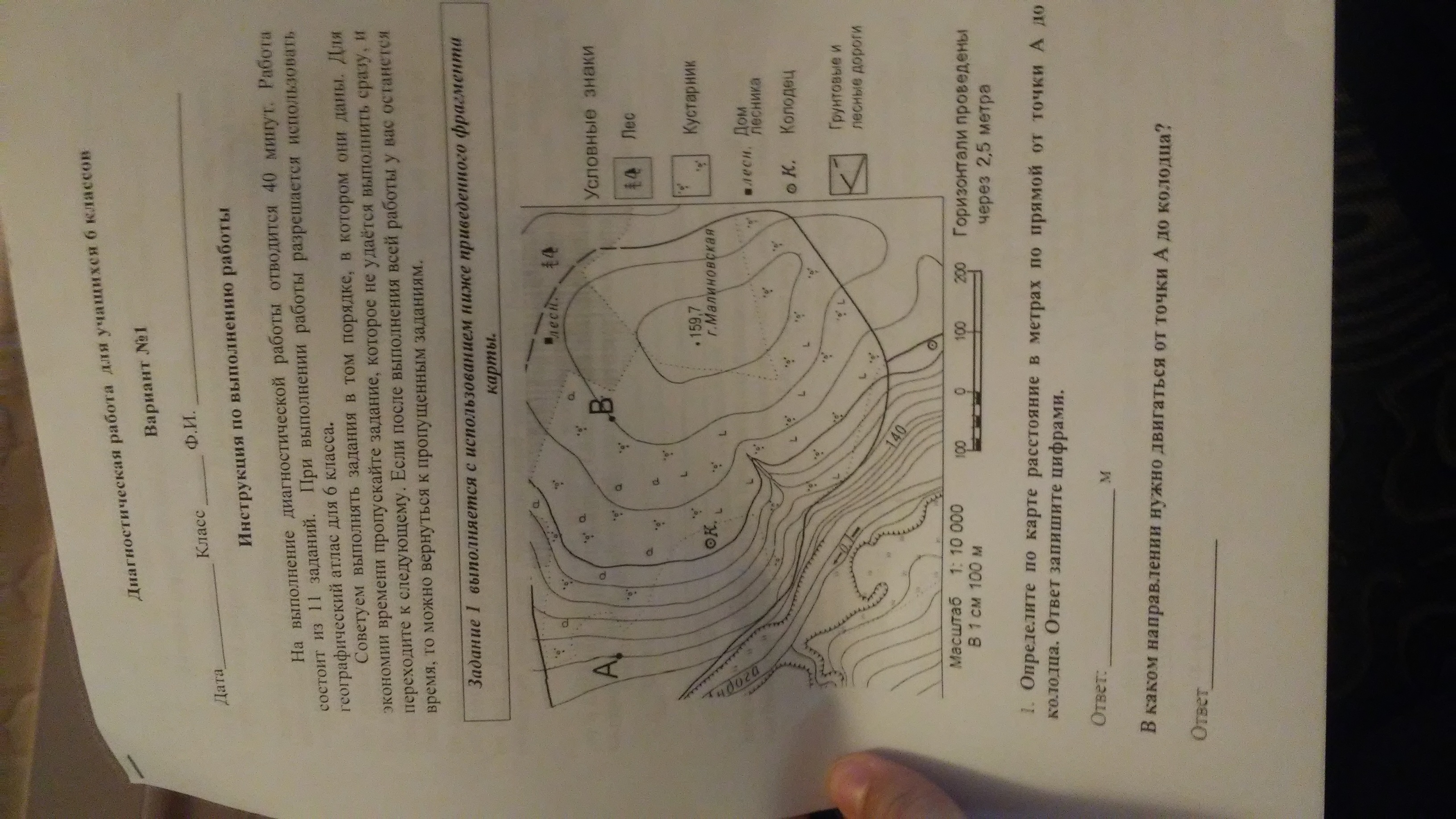 Определите по карте расстояние в метрах по прямой от точки А до колодца. Ответ запишите цифрами