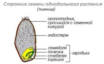В результате процесса оплодотворения образуются семена, строение которых обусловливает выполняемые функции. Размер семян различных растений варьируется в значительных пределах: от миллиметровых семян мака до полуметровых у сейшельской пальмы. Форма семян также разнообразна, но чаще она округлая. Обычно семена фасоли, строение которых является типичным, служат примером изучения данного генеративного органа. Кожура семени сформирована из покровов семязачатка. Это надежная защита семени от недостатка влаги и опасных факторов окружающей среды. Защитный покров может быть окрашен в разные цвета. Рассматривая вогнутую сторону семени, легко заметить углубление, которое является следом от семяножки. До формирования плода она соединяла семя с околоплодником.