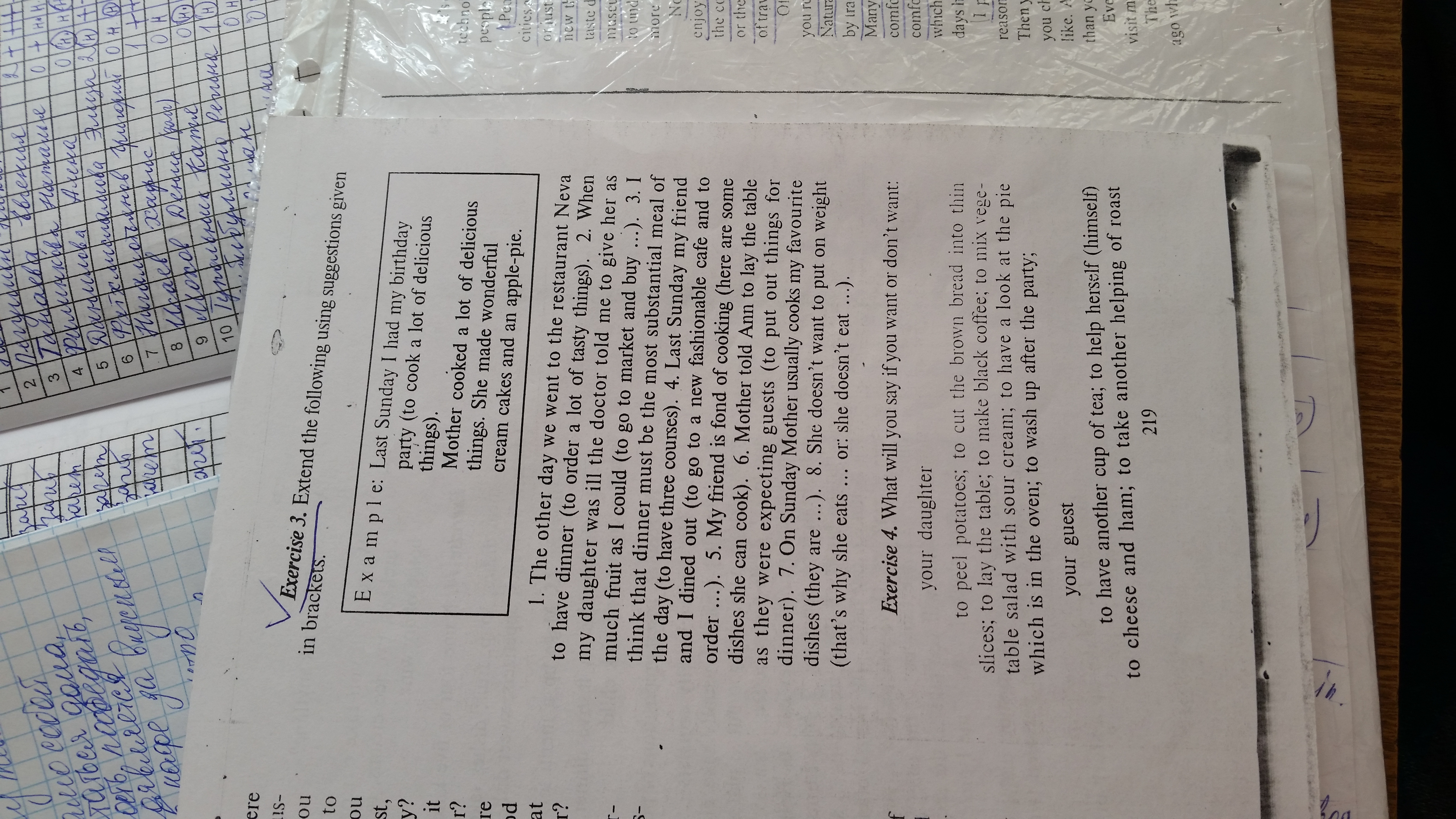 4) We went to a new fashionable cafe and ordered many tasty things. We ordered coffee, cake, maccaroons and juice.