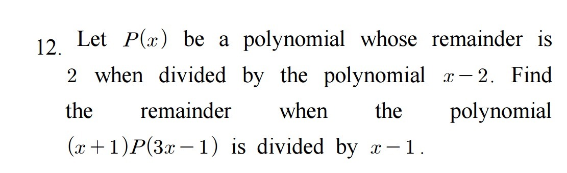 Требуется найти остаток от деления (x + 1) P(3x - 1) на x - 1. Поскольку x - 1 = многочлен первой степени, то остаток от деления - константа. Обозначим неполное частное за Q2(x), остаток за R2: