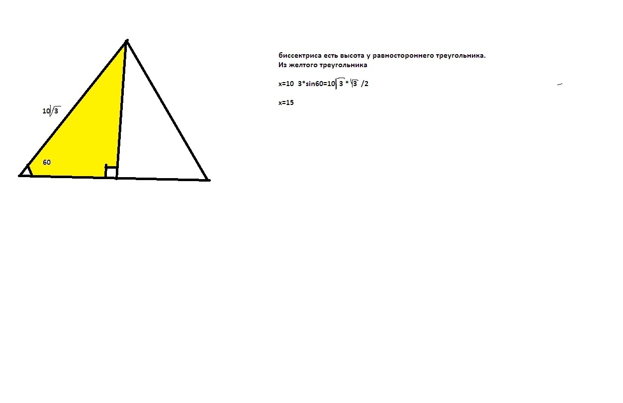 1) Рассмотрим ΔАВС - равносторонний , следовательно, биссектрисы в этом треугольнике являются медианами и высотами.