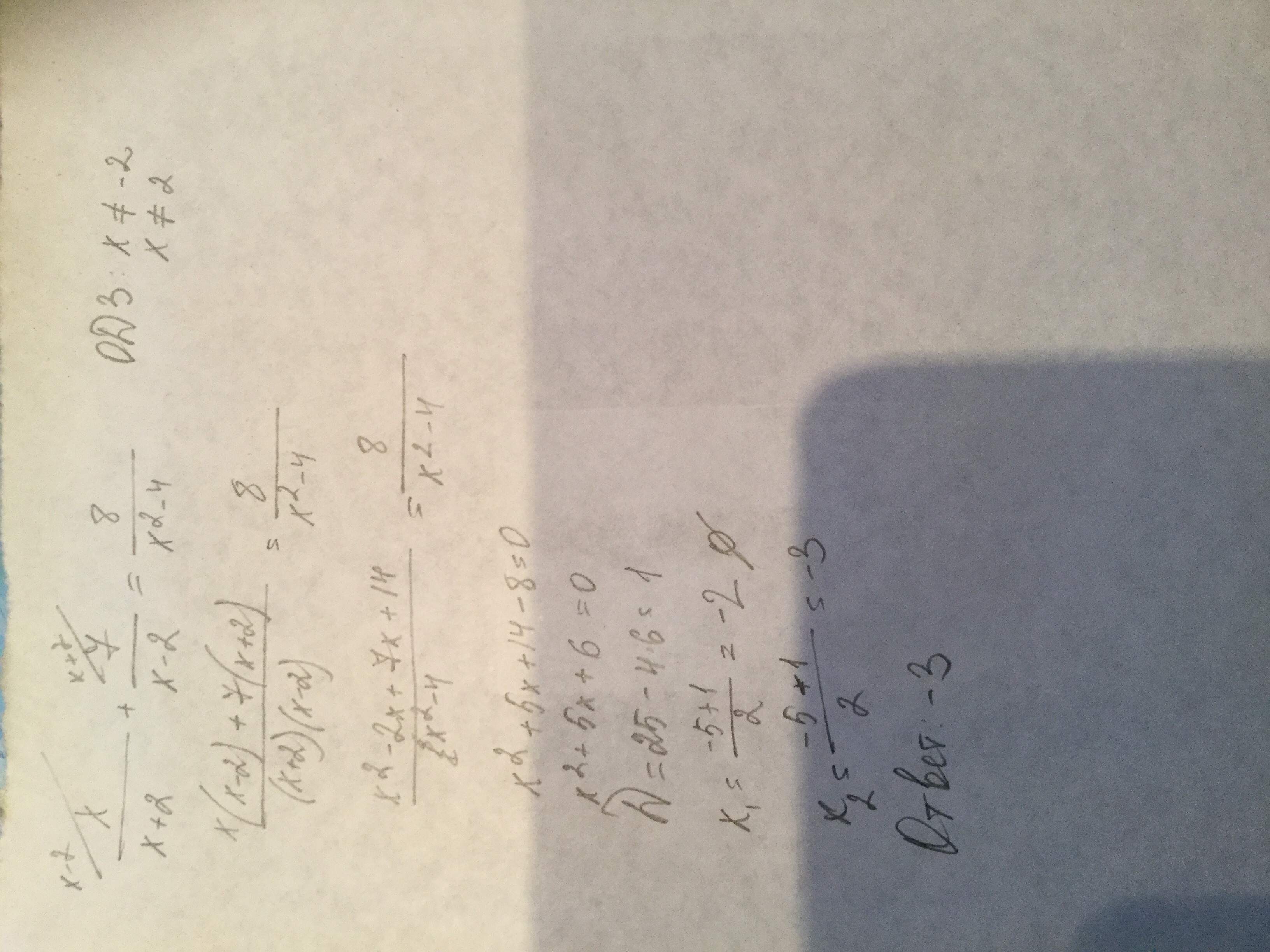 x1 = ------------ = -4 / 2 = -2 (противоречит одз)