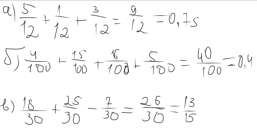а)12 3/12-(7 4/12+1 2/12)=12 3/12-8 6/12=12 15/12-8 6/12=4 9/12=4 3/4=9,75