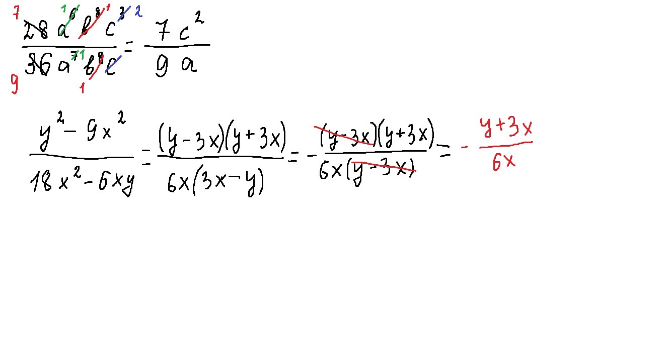 28a^6b^8c³/36a^7b^8c=7c²/9a