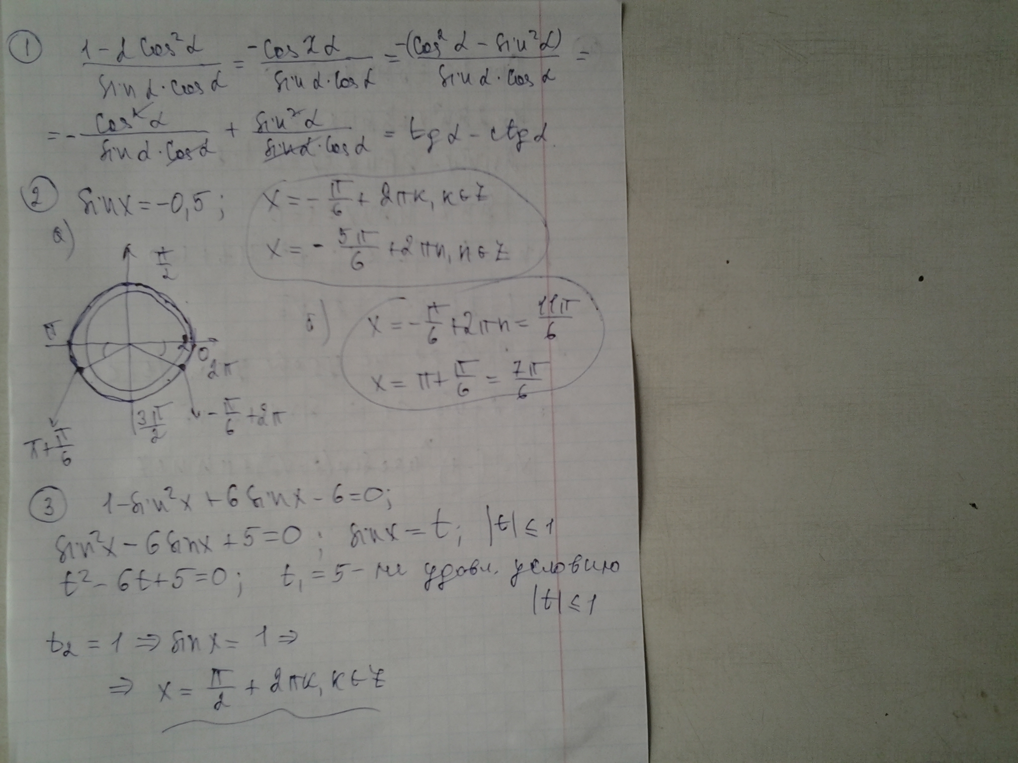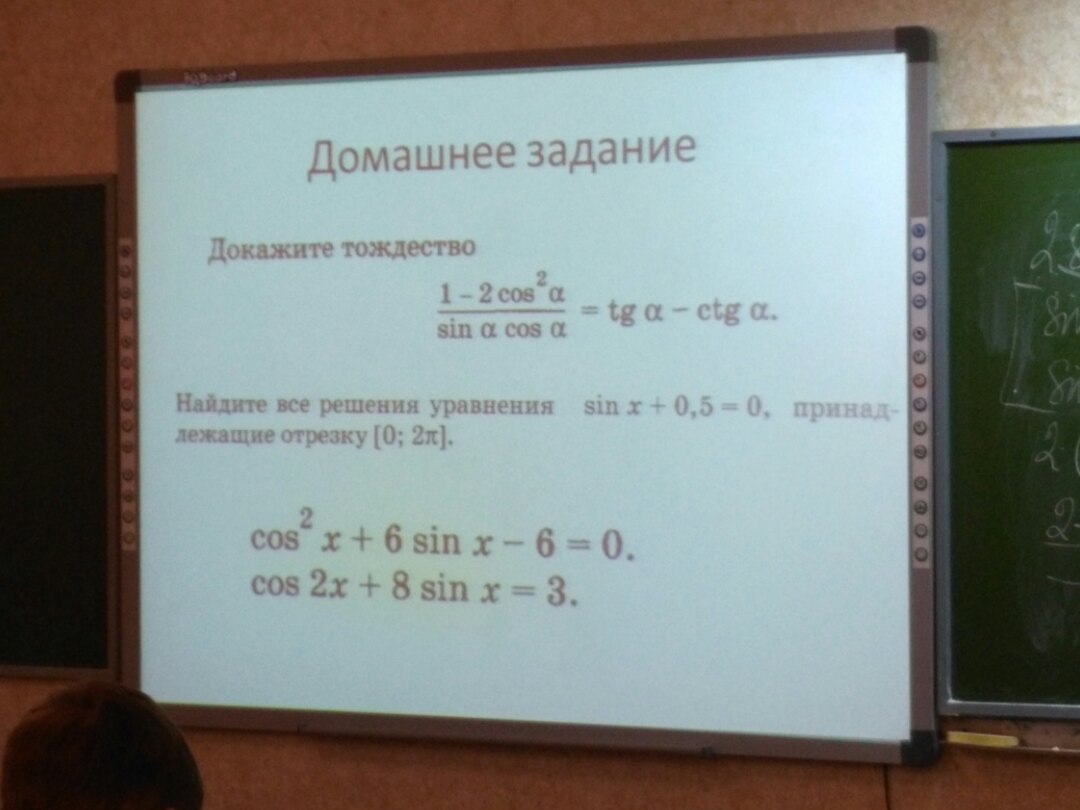 Применены: формула двойного угла косинуса, замена переменной, табличные значения тригонометрических функций, отбор корней на тригонометрической окружности