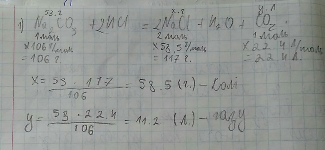 СРОЧНОО ПОМОЖИТЬ на натрій карбонат масою 53 г подіяли хлоридною кислотою ,Яка маса солі та об'єм газу виділилися?