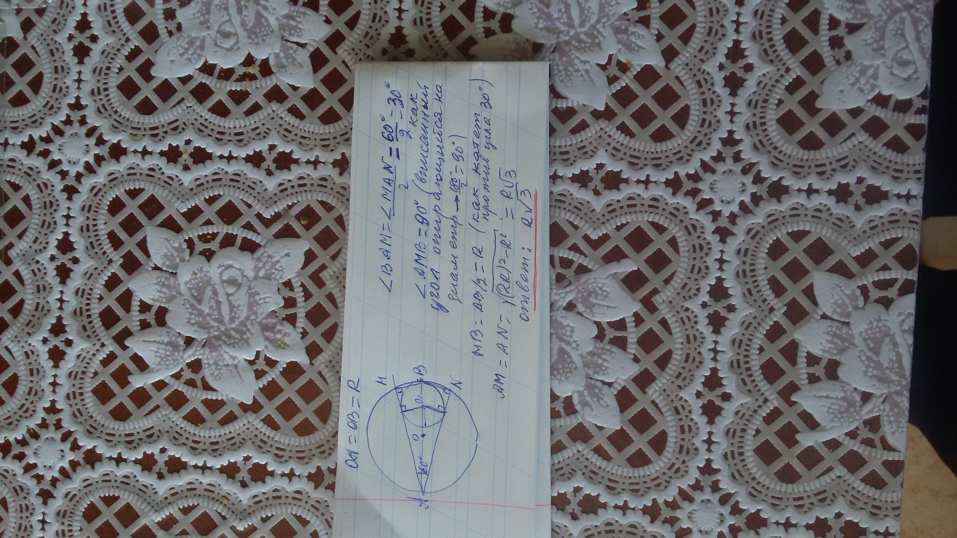 Две окружности касаются внутренне в точке B,АВ-диаметр большей окружности.Через точку А проведены 2 хорды,которые касаются меньшей окружности.Угол между хордами равен 60 градусов.Найдите длины этих хорд,если радиус большей окружности равен R.