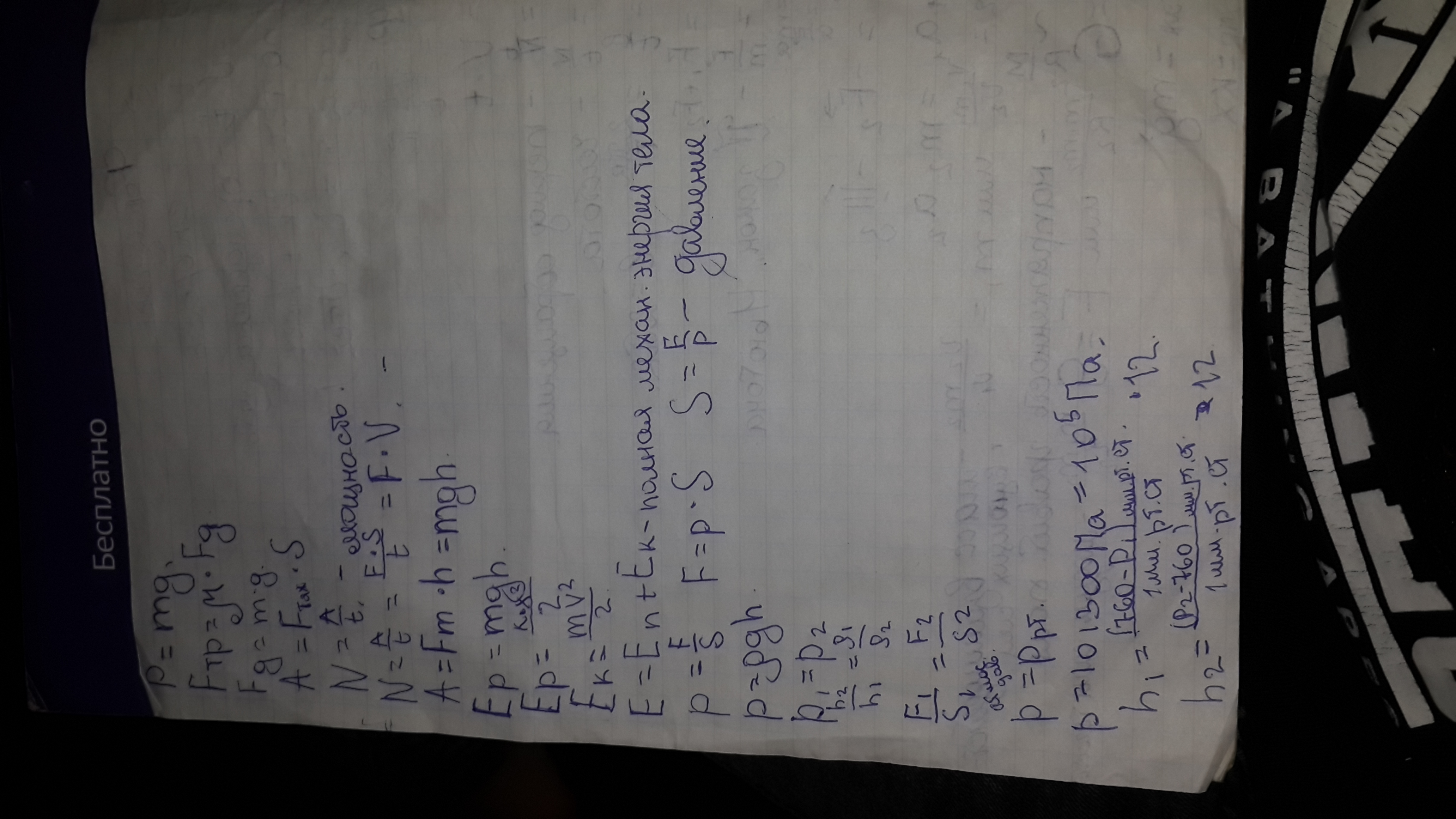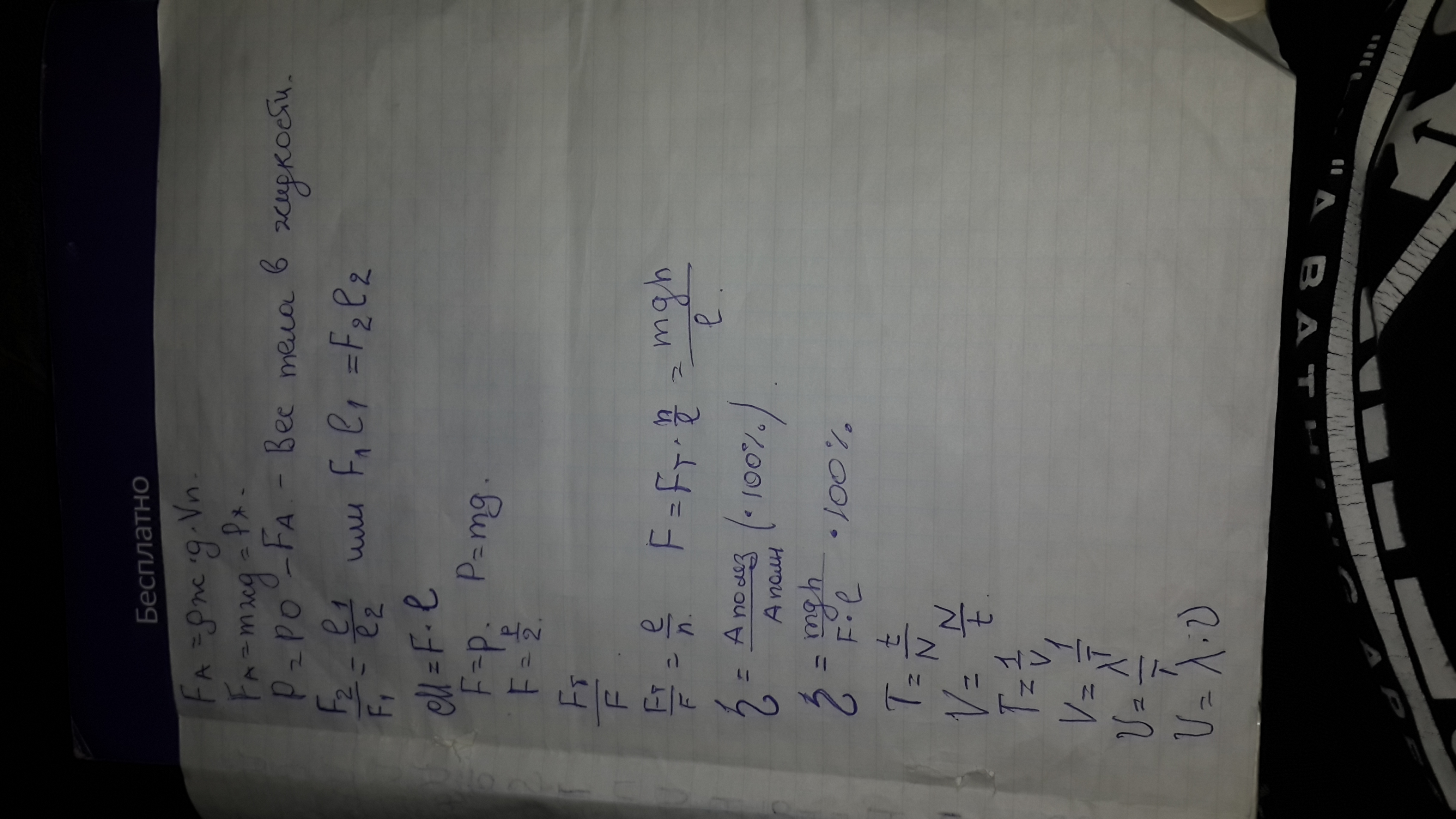 11.Давление жидкости на дно и стенки сосуда: P=pgh(где p-плотность жидкости, h-высота (глубина) жидкости