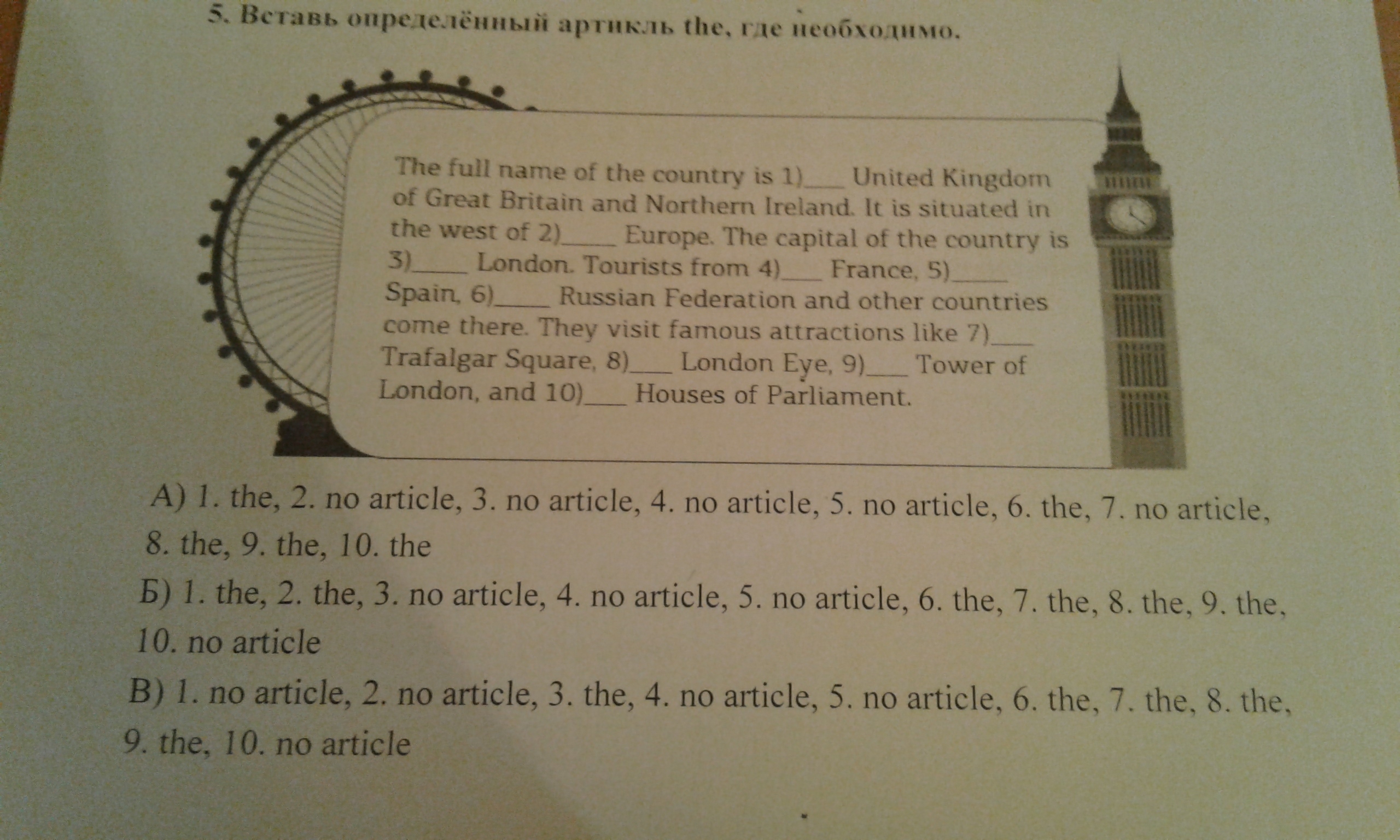 The full name of the country is the United Kingdom of Great Britain and Northern Ireland. It is situated in the west of Europe. The capital of the country is London. Tourists from France, Spain the Russian Federation and other countries come there. They visit famous attractions like Trafalgar Square, the London Eye, the Tower of London and The Houses of Parliament