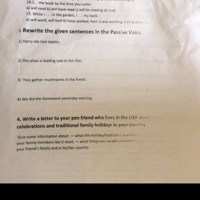 4) Homework was done yesterday evening.