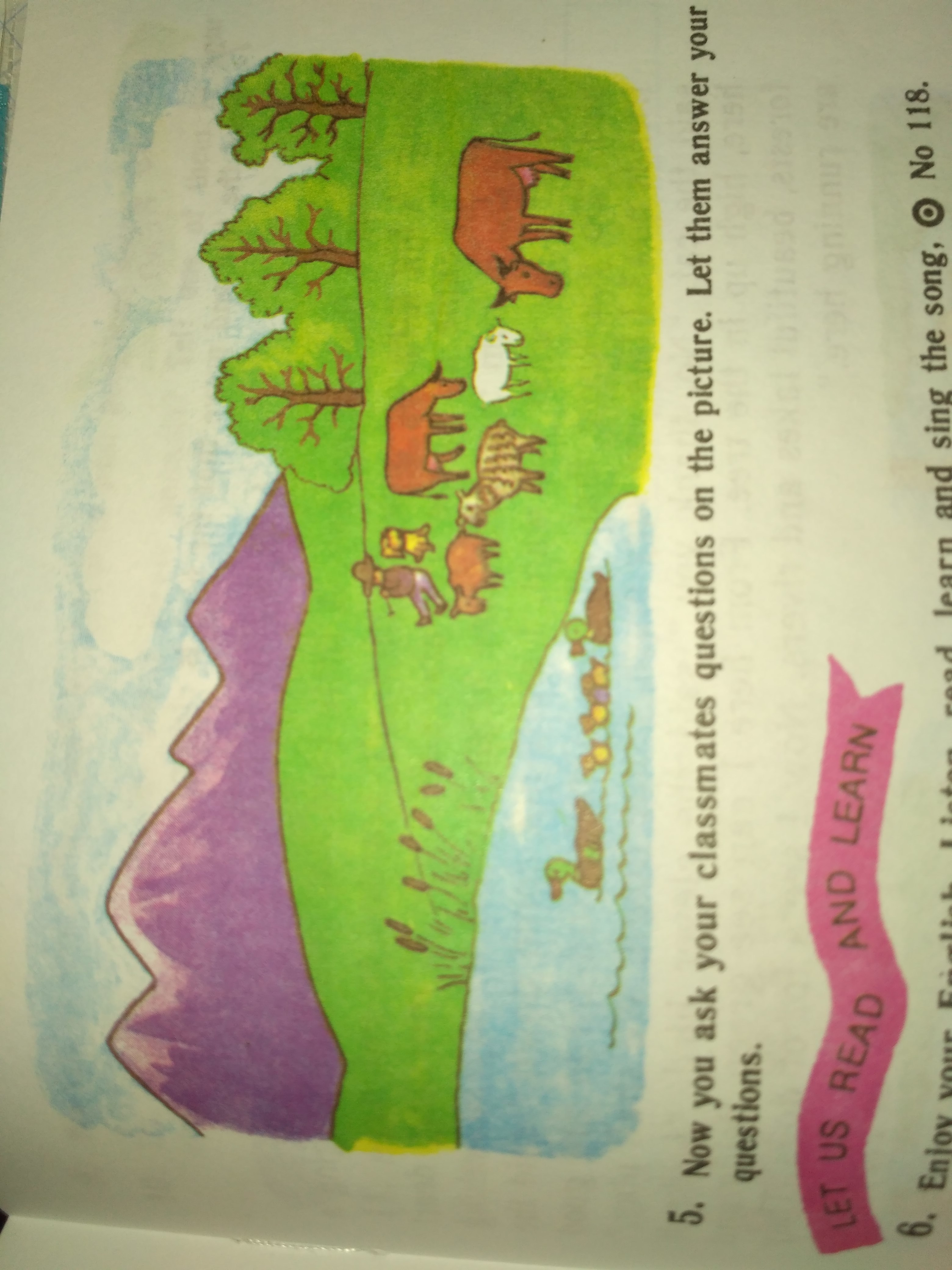 Sheep white and beige duck brown and yellow dog yellow cow brown овцы белая и бежевая утка коричневая и желтая собака желтая коровы коричневые 8 вопрос какое это время года? почему ты так думаешь? ответ:лето потому что светит солнце и тепло