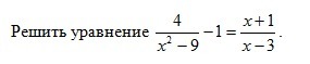 решить уравнение 4/x^2-9-1=x+1/x-3