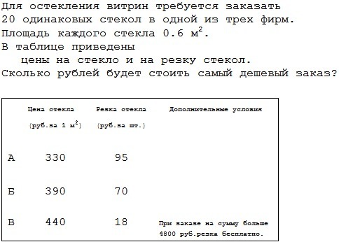 для остекления витрин требуется заказать 20 одинаковых стекол 0.6 м ^2