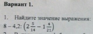 общий знаменатель будет 42,значит к двум целым 5/14 умножаем 3, а к 1 целой 4/21 умножаем 2 ,вычитаем, получается 42/49
