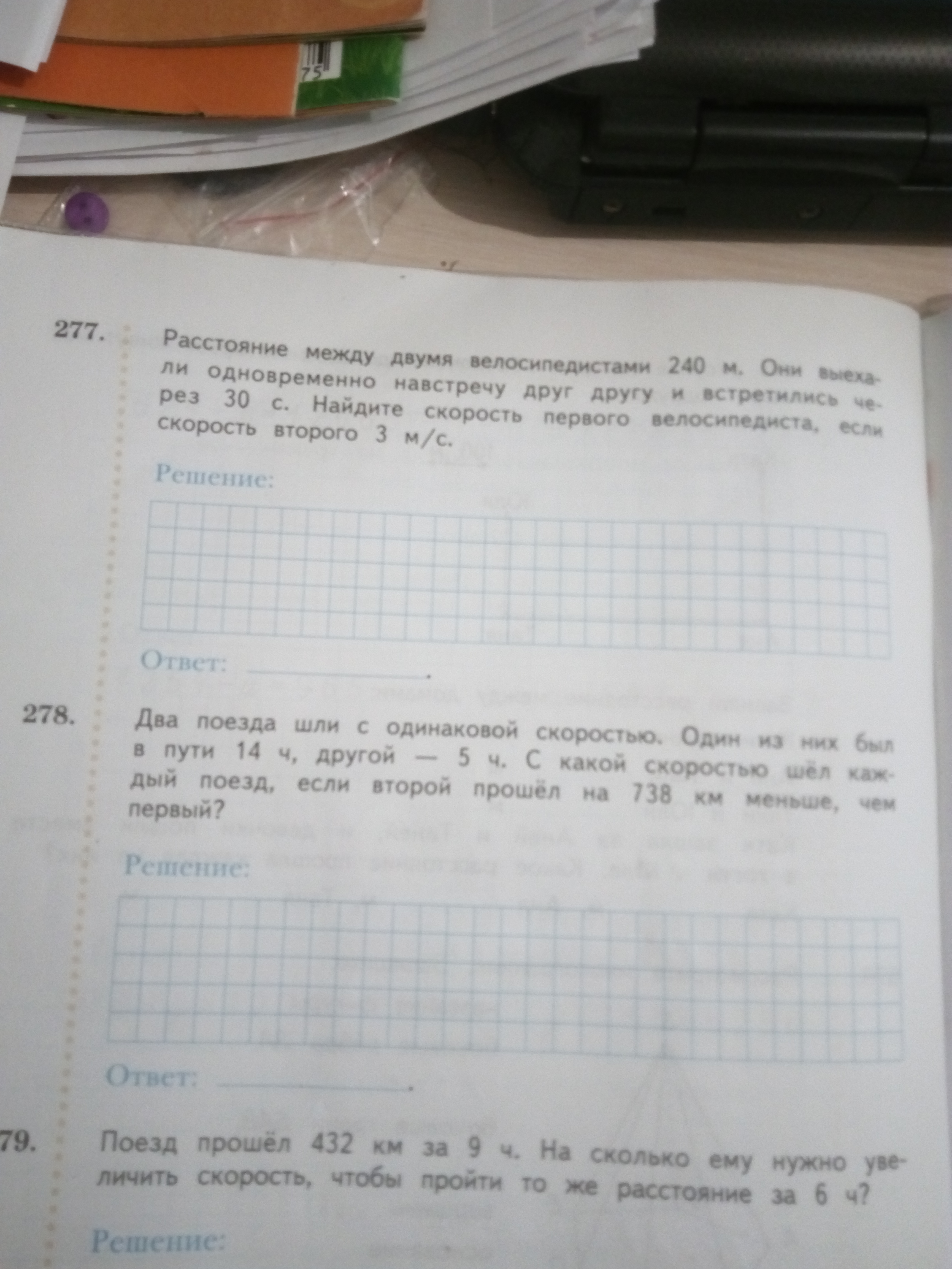 второй проехал 30*3=90 метров, первый проехал 240-09=150 метров его скорость = 150/30=5 м/с