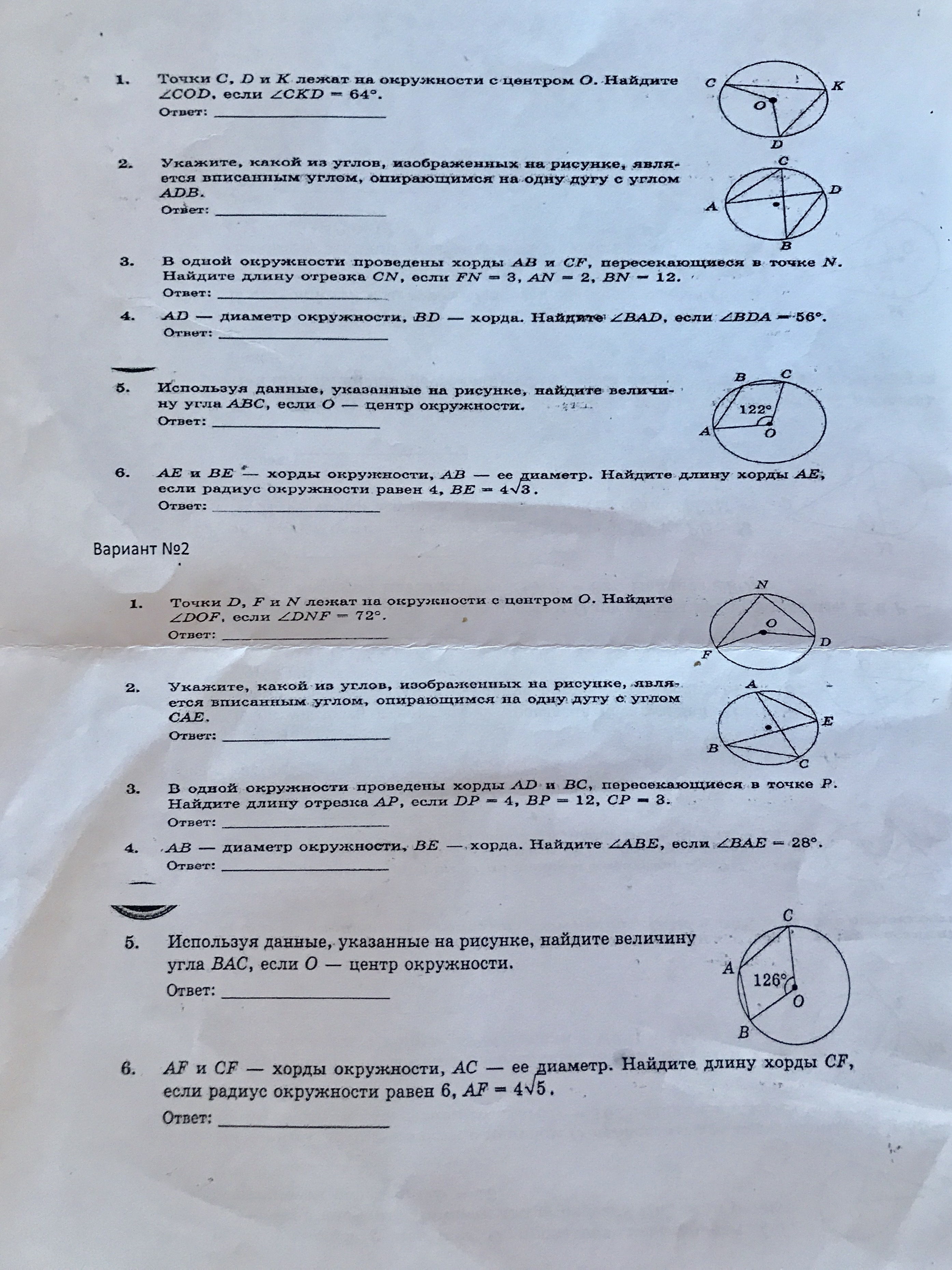ГЕОМЕТРИЯ. Решите любой вариант, первые 4 номера! Заранее спасибо.