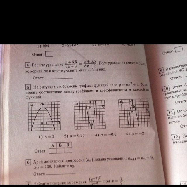 А-5,Б-(-7),В-2, а-обозначает место пересечения функции с осью OY или же ординат