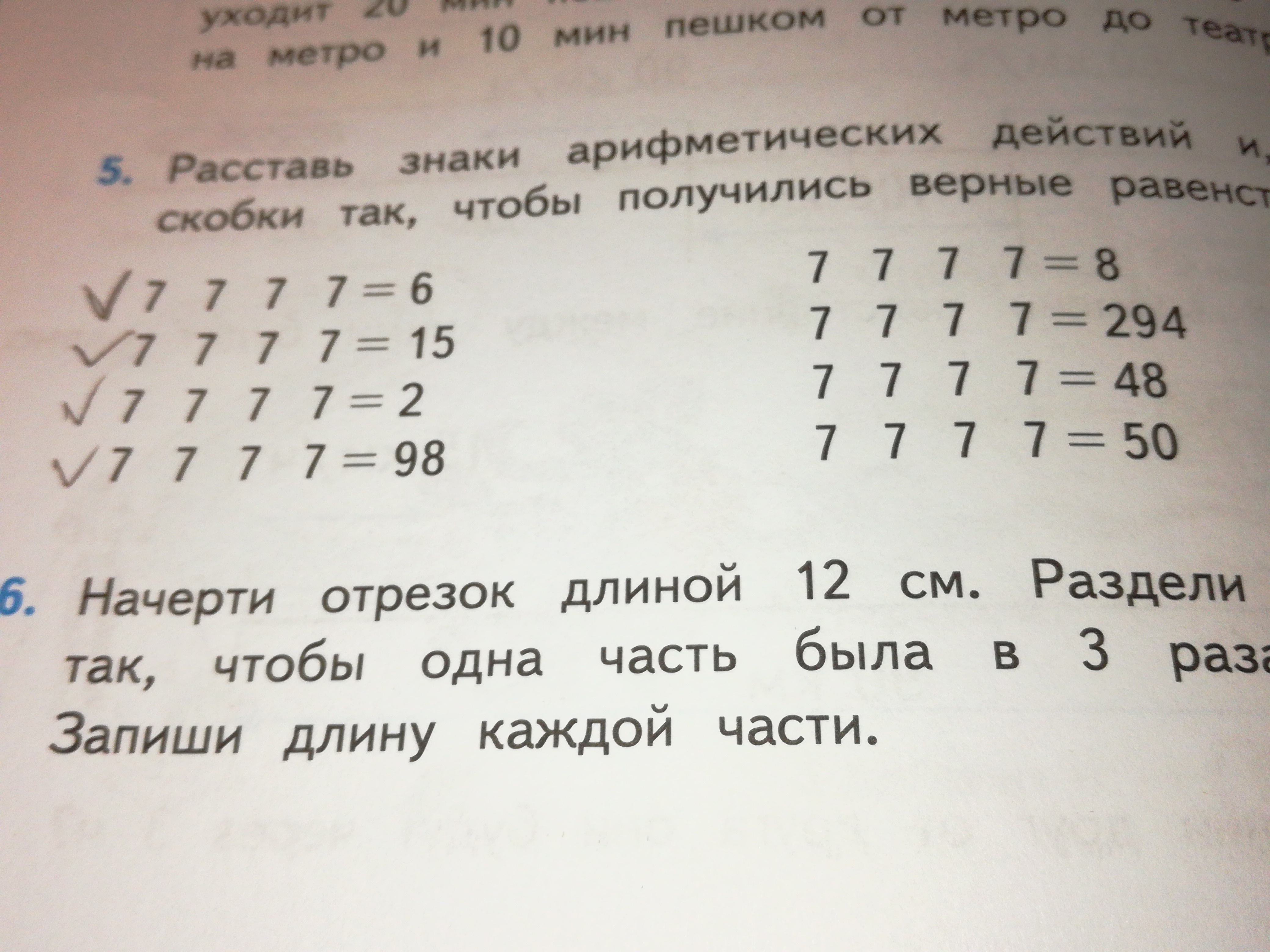 Расставь знаки арифметических действий и, если нужно, расставь скобки так, чтобы получились верные действии.