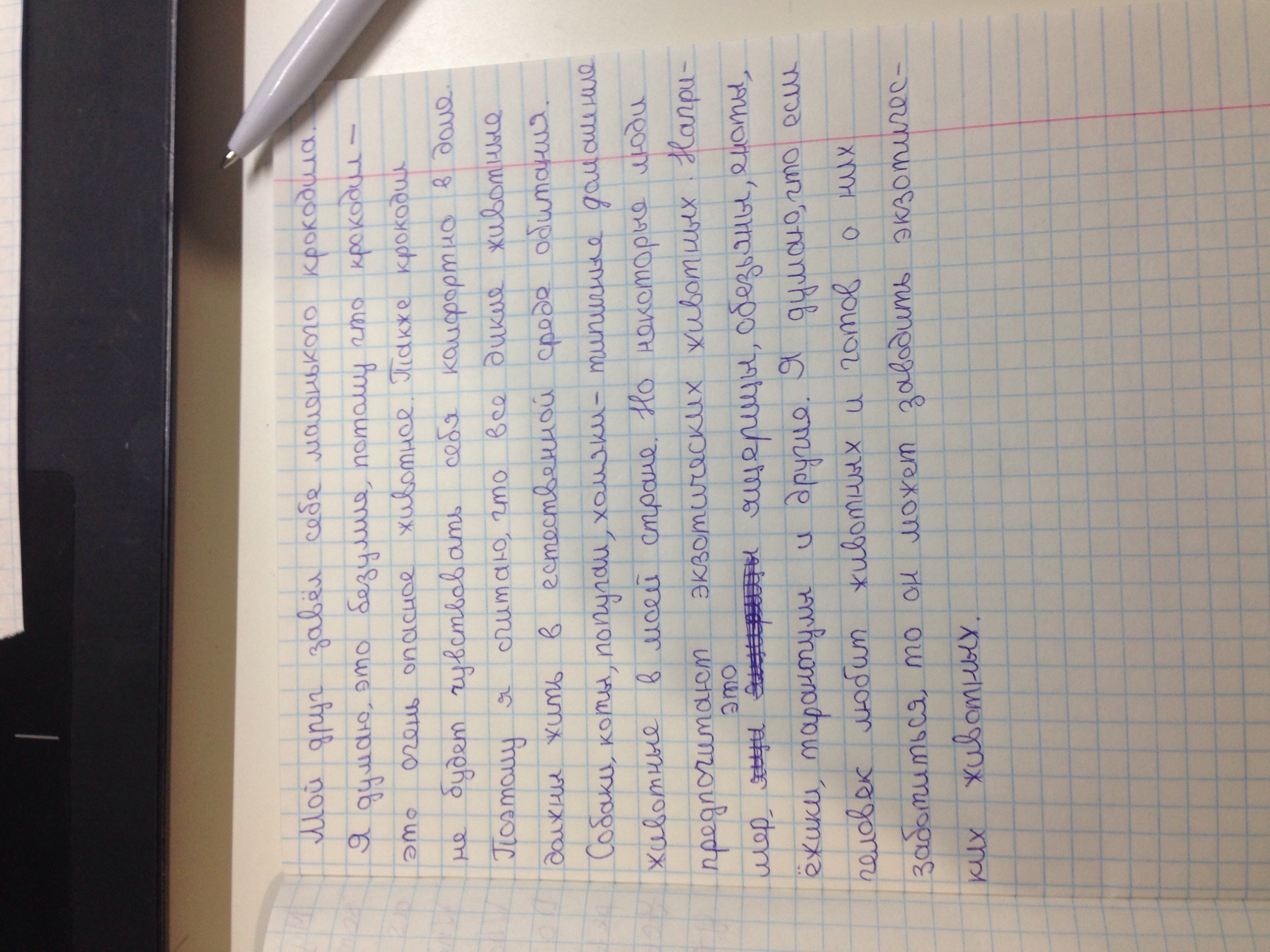 My friend got a small crocodile/ I think, it is a crazy idea, because crocodile is a very dangerous animal. So, it wont be comfortable for crocodile to live in the house. And, as for me, crocodiles should live in the natural habitat. Dogs, cats, parrots, humsters are the odrinary pets in my country. But some people are fond of exotic animals. I mean, lizards, monkeys, racoons, hedgehogs, tarantulas and so on. I think, that if you like animals and you are ready to take care of them, he can get the exotic animals