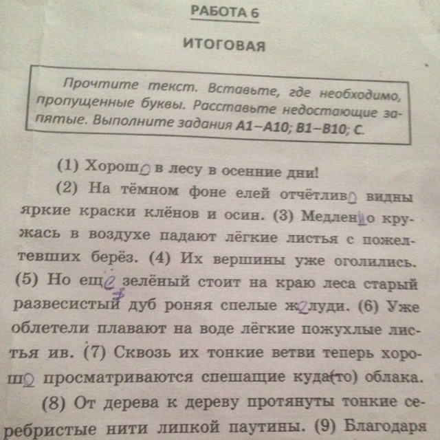 В 3 предложении запятая после слова в воздухе. В 5 предложении после слова дуб. В 6 предложении после слова облетели.