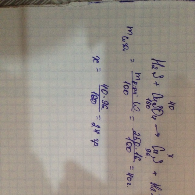 Какая масса осадка образуется при пропускании сероводорода через к 250 г 16%-ного раствора сульфата меди(II)?