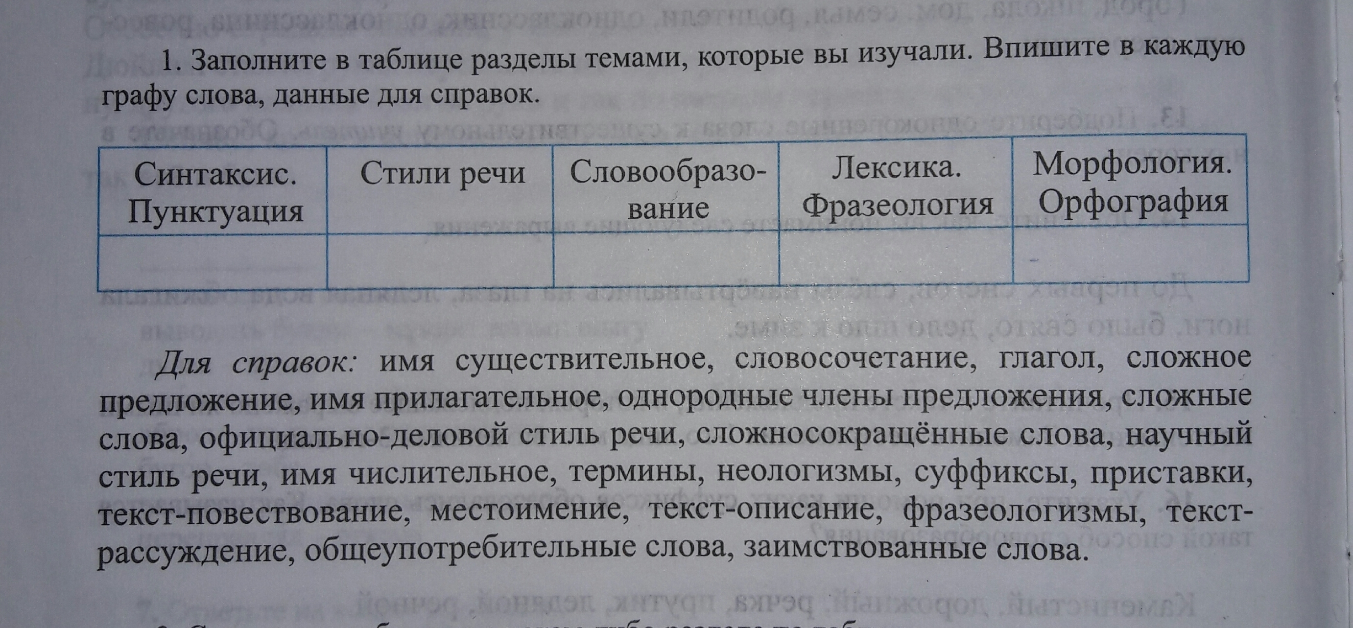 1) словосоч, слож. предлож., одном. Члены. 2)официальный, научный, тексты. 3)сложносокрщ., суффикс, приставка. 4)термины, неологизмы, фразеологизмы, общеупотр., заимст. 5) все оставшие