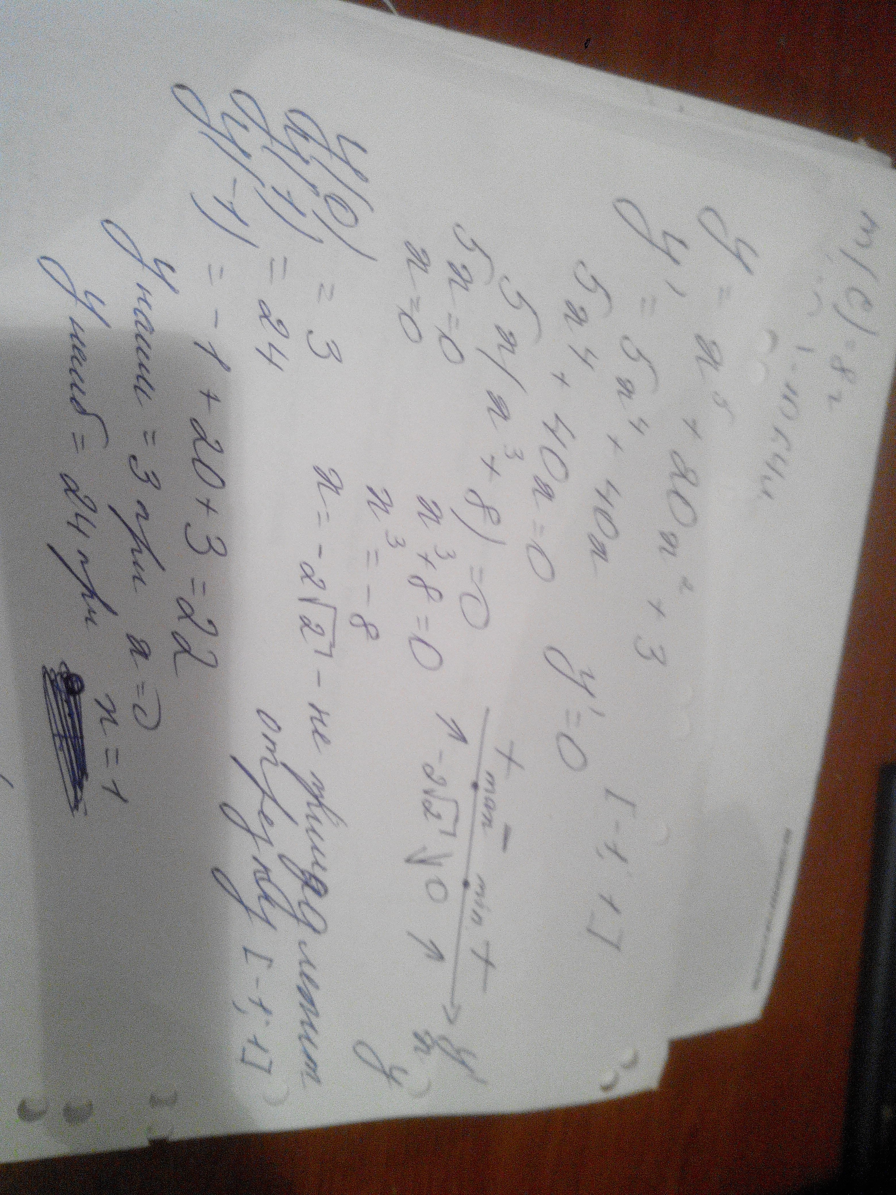 [-1;1] Y=x^5+20x^2+3 Найти наибольшее и наименьшее значения функции на отрезке ( Желательно сфотографировать ответ) ПОМОГИТЕ ПОЖАЛУЙСТА