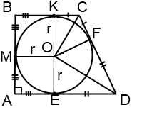 3) Можно использовать следующее свойство для прямоугольной трапеции, в которую вписана окружность: