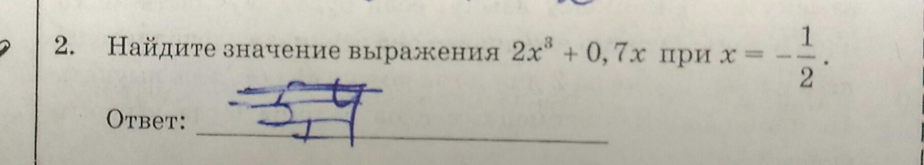 подставляем значение: 2*(-1/2)^3+0,7*(-1/2)=2*(-1/8)-0,7*0,5= -0,25-0,35= -0,6 . Ответ: -0,6 .