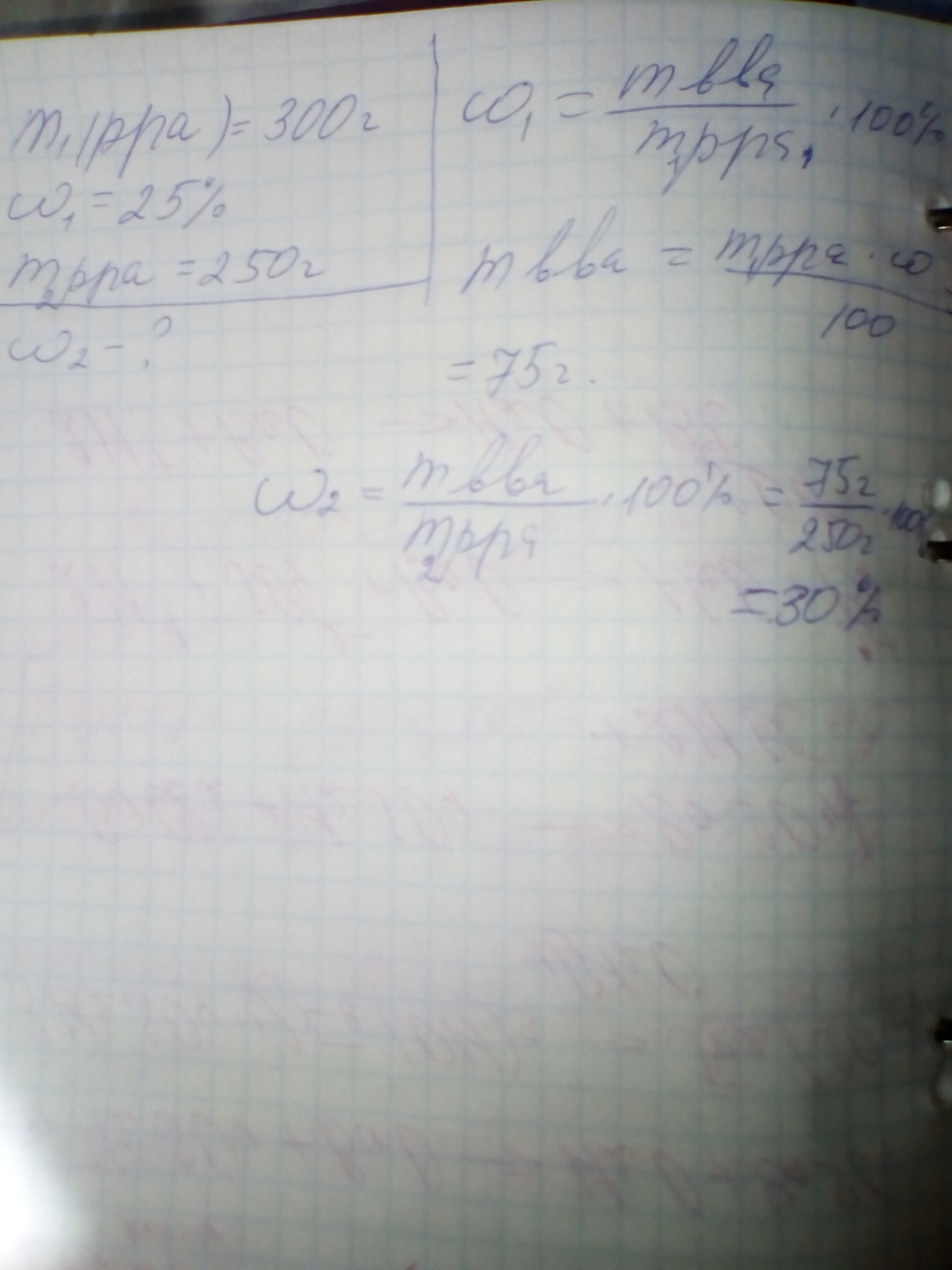 300г 25% раствора поваренной соли упарили до 250 г. Определите массовую долю растворенногл вещества в полученном растворе.