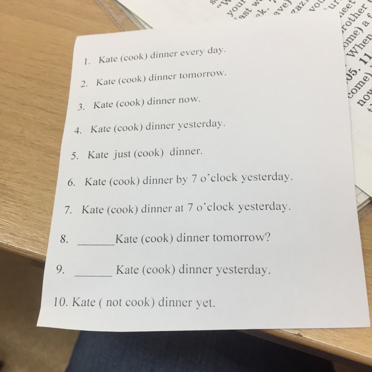 Kate had cooked dinner by 7 o'clock yesterday