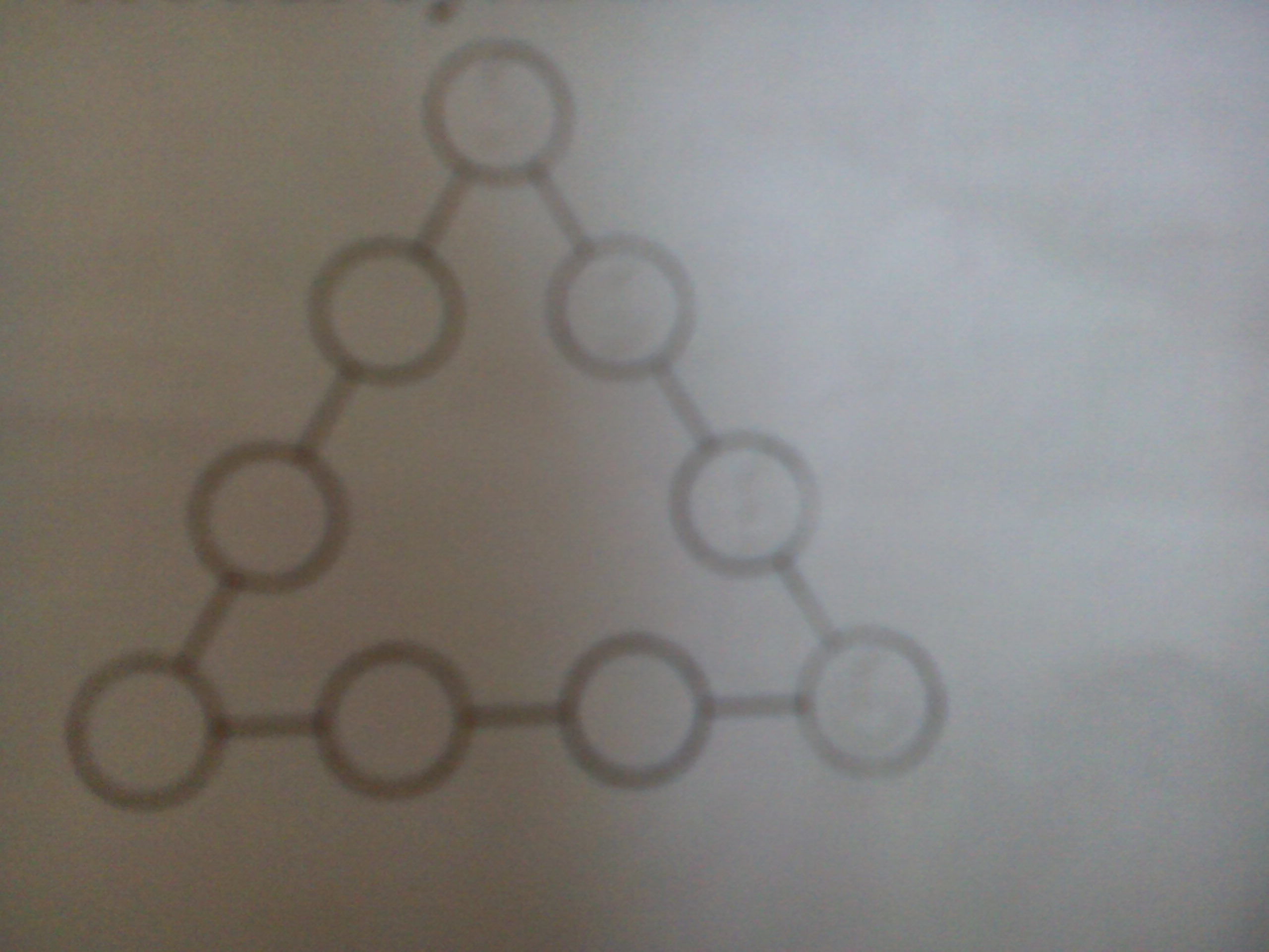 В кружках треугольника расставьте все 9 значащих цифр так, чтобы сумма их на каждой стороне составляла 17