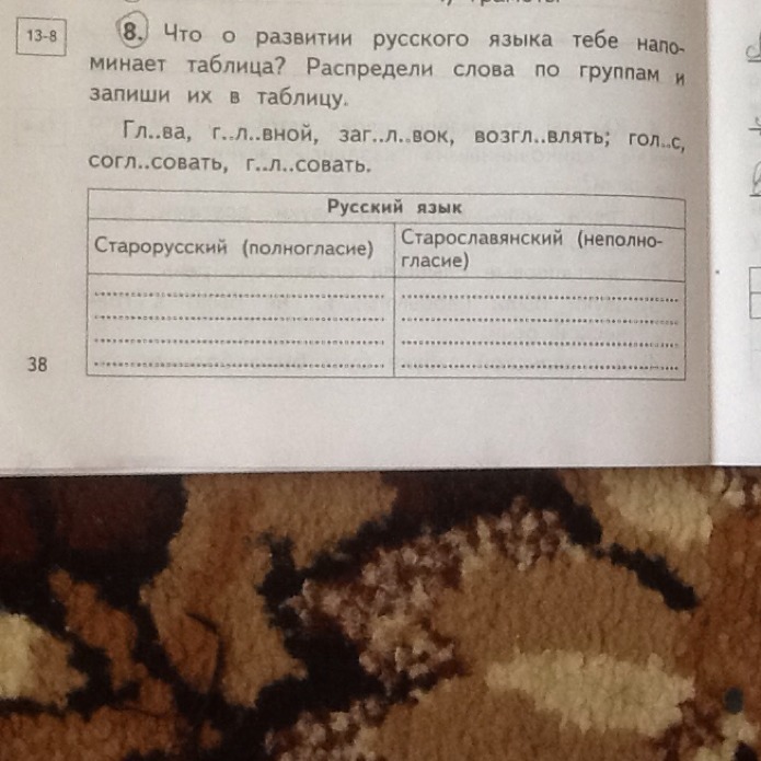 Что о развитии русского языка тебе напоминает таблица ? Распределить слова по группам и запиши их в таблицу.