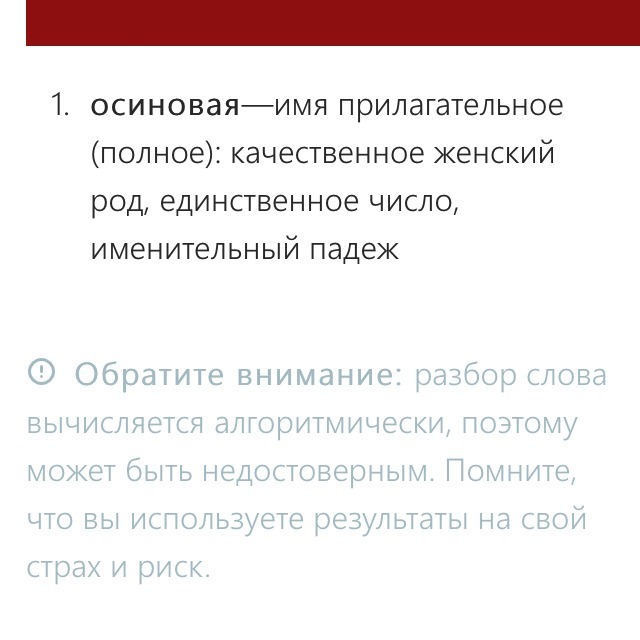 Начальная форма: осиновый (им . падеж, ед число, мужской род) Постоянные признаки: качественное;