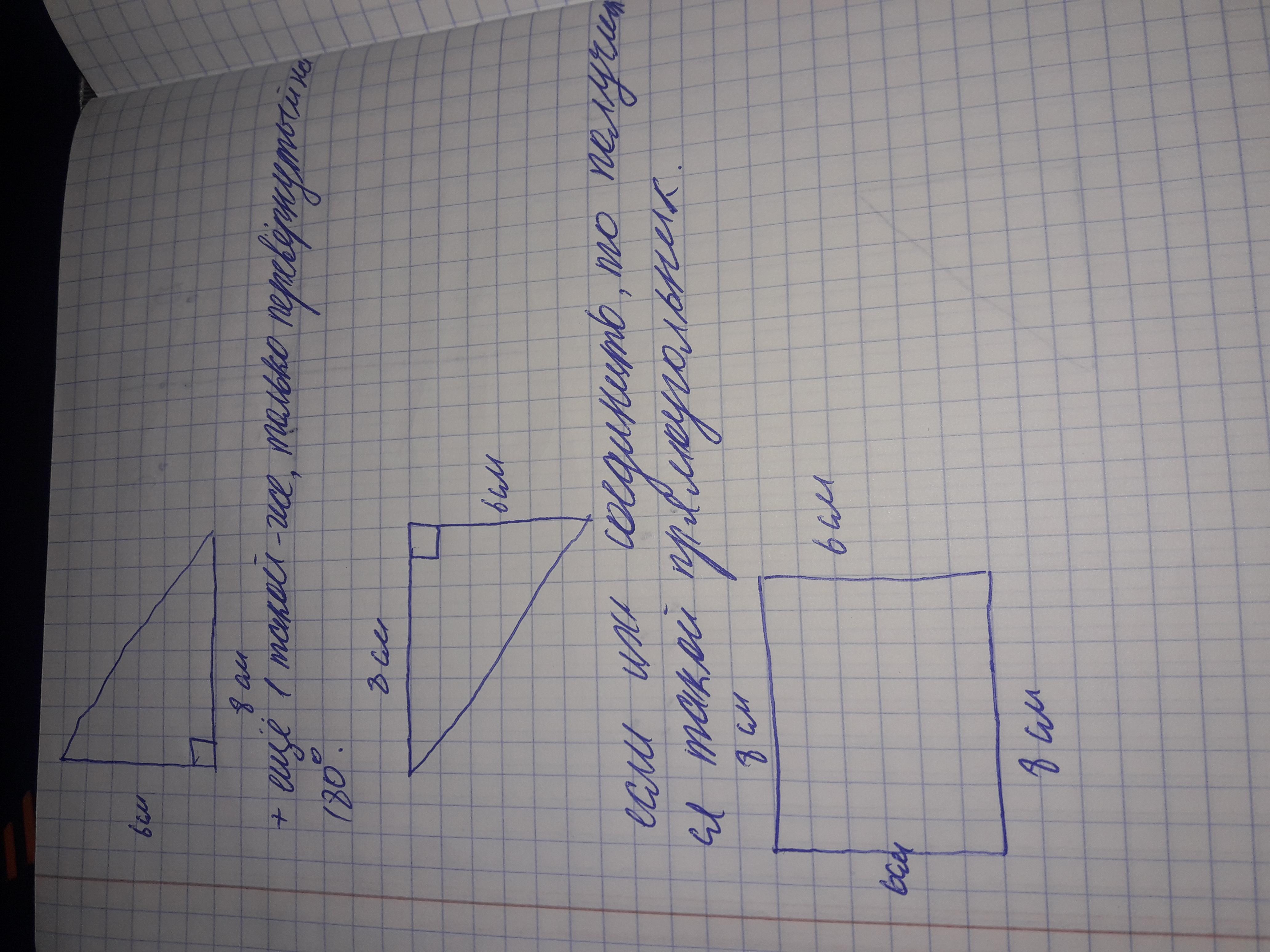 как мы знаем прямоугольные треугольники имеют катет и гипотенузу, для того, чтобы построить прямоугольник, нам надо сделать так, чтобы 1 из катетов был больше другого. на фот очке все есть)