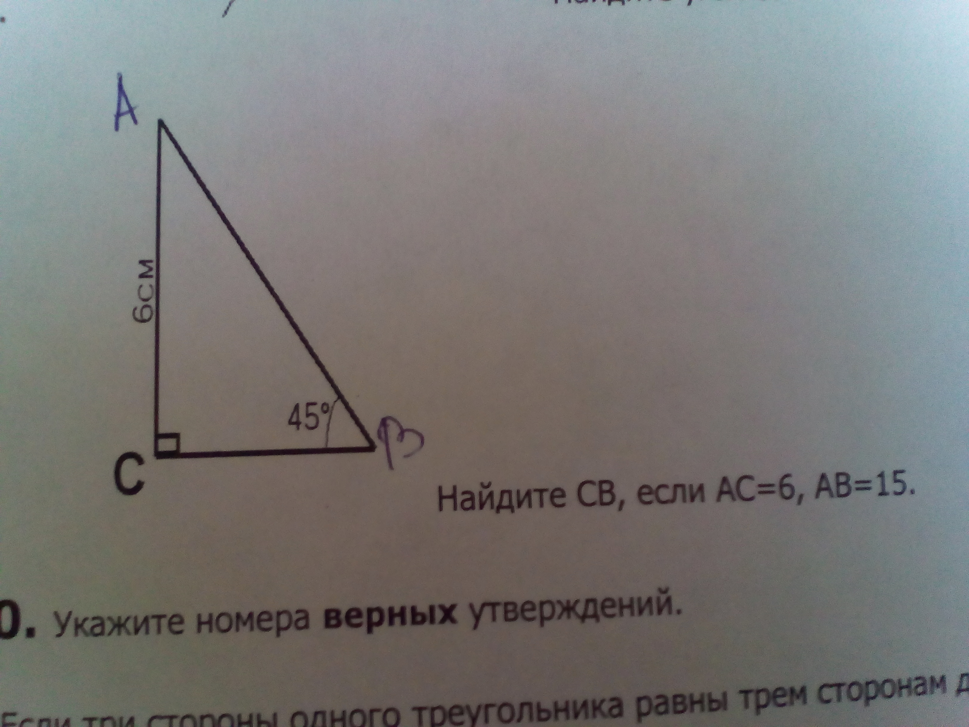По теореме Пифога: CB=AB^2-AC^2 = 15^2-6^2 = 225-36 = корень из 189 = 3 корней из 21