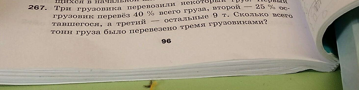 25 процентов от 40 процентов – это 10 процентов от общего (0,25*0,4=0,1). Оставшиеся 9 тонн – это 100-40-10 = 50 процентов от общего. Составим пропорцию: