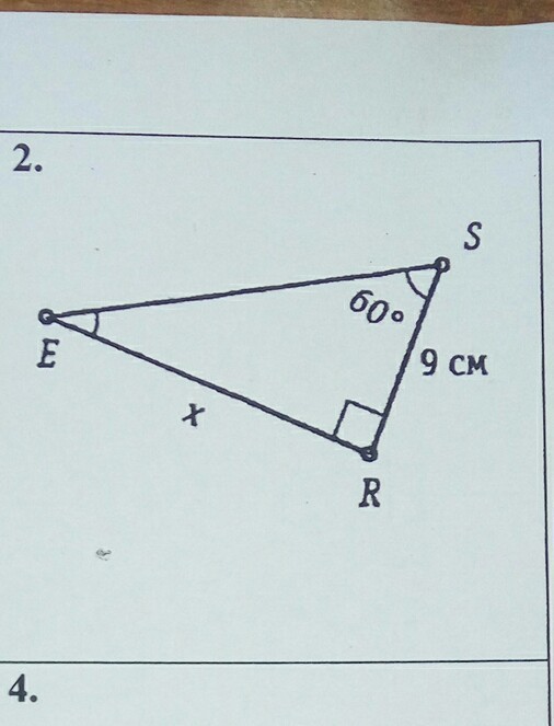 Напротив угла в 30° лежит катет, который вдвое меньше гипотенузы. Значит гипотенуза в 2 раза больше катетSR . ЕS=2*9=18см.